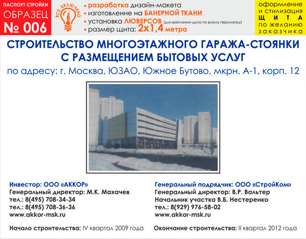 Паспорт стройки, образец № 6 (баннерная ткань, 2000х1400 cм) в Черкесске купить