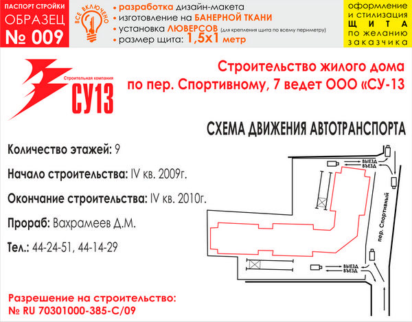 Паспорт стройки, образец № 9 (баннерная ткань, 1500х1000 cм) в Черкесске купить