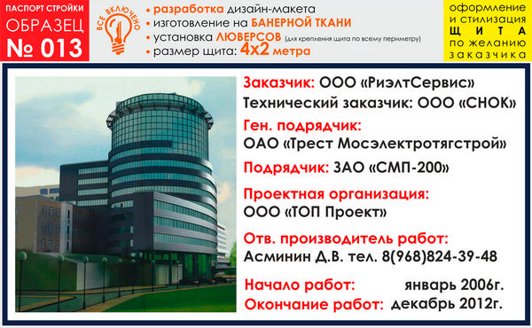 Паспорт стройки, образец № 13 (баннерная ткань, 4000х2000 cм) в Черкесске купить