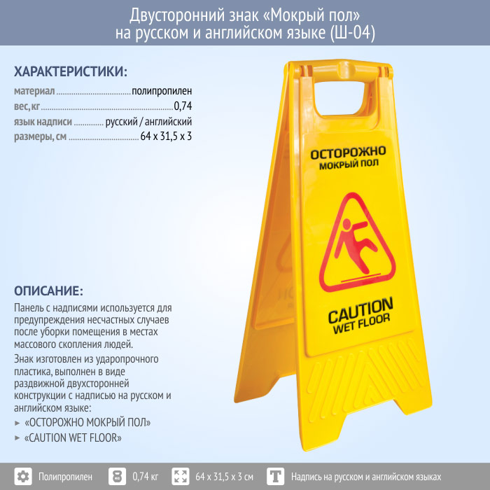 Знак «Мокрый пол» на русском и английском языке (Ш-04) в Черкесске купить