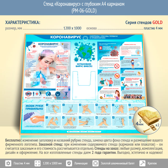 Стенд «Коронавирус» с глубоким А4 карманом (PM-06-GOLD) в Черкесске купить
