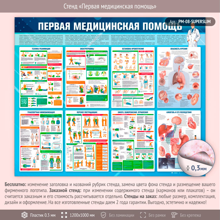 Стенд «Первая медицинская помощь» (PM-08-SUPERSLIM) в Черкесске купить