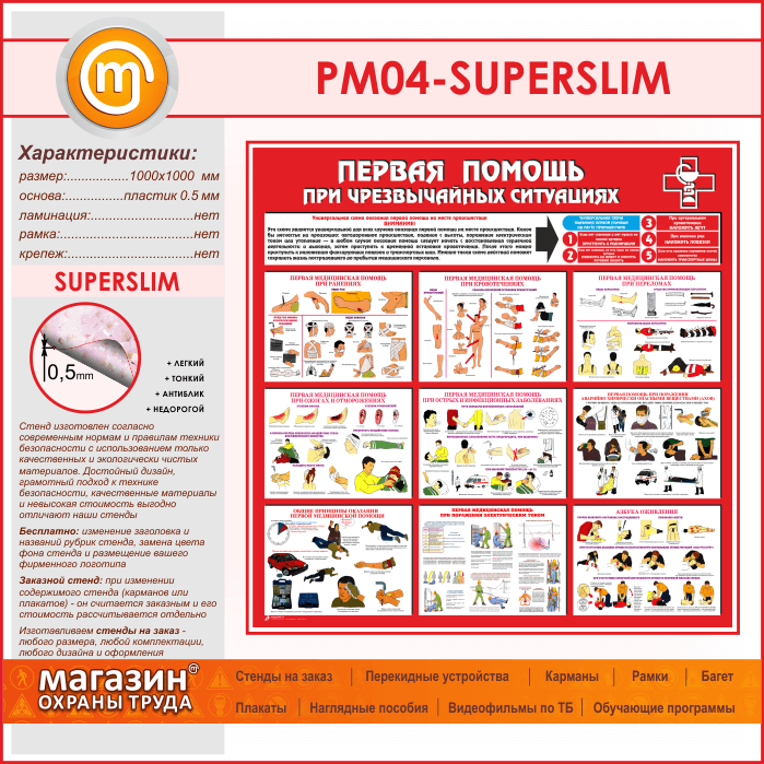 Стенд «Первая помощь при чрезвычайных ситуациях» (PM-04-SUPERSLIM) в Черкесске купить