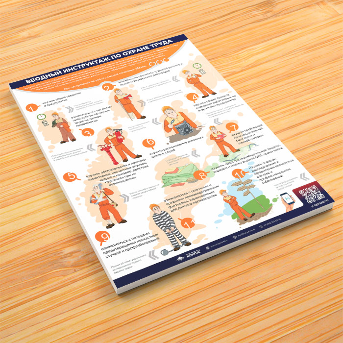 Плакат «Вводный инструктаж по охране труда» может быть изготовлен любого формата и размера, на бумаге, самоклеящейся пленке, пластике, баннерной ткани и металле. Разрабатываем, рисуем и изготавливаем плакаты на любую интересующую Вас тематику