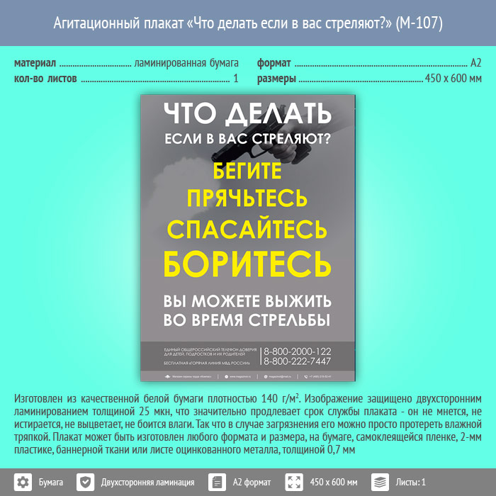 Плакат «Что делать если в вас стреляют?» (М-107, ламинированная бумага, А2, 1 лист) в Черкесске купить