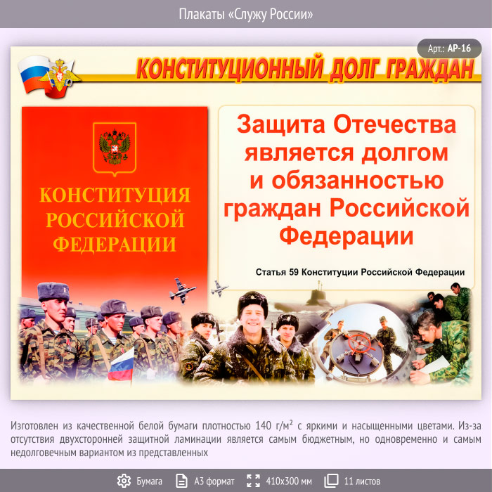 Плакаты «Служу России» (АР-16, бумага, А3, 11 листов) в Черкесске купить