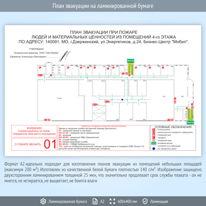 План эвакуации на ламинированной бумаге (А2 формат) в Черкесске купить