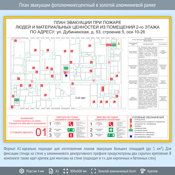 План эвакуации без фотолюминесценции (А1, ПВХ 4 мм, золотой багет) в Черкесске купить