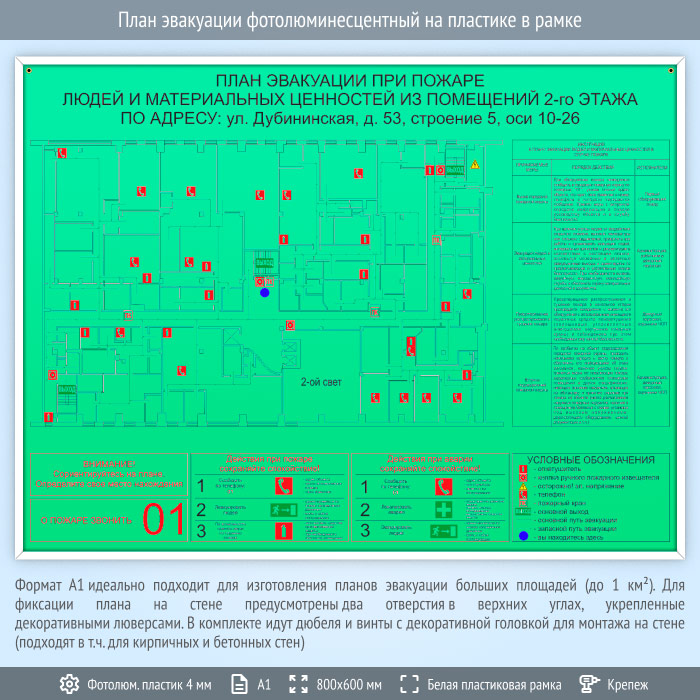 План эвакуации фотолюминесцентный на пластике в рамке (А1 формат) в Черкесске купить