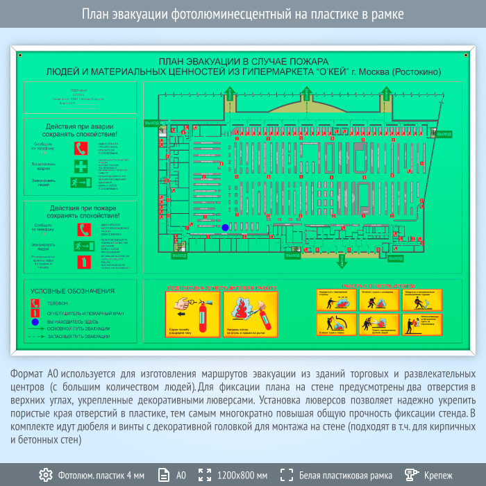 План эвакуации фотолюминесцентный на пластике в рамке (А0 формат) в Черкесске купить
