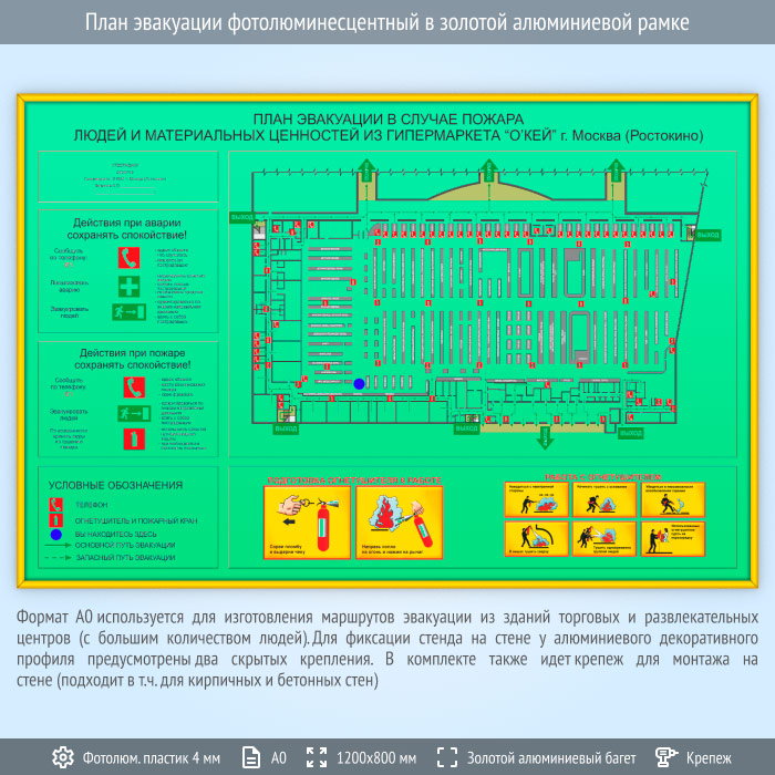 План эвакуации фотолюминесцентный в золотой алюминиевой рамке (А0 формат) в Черкесске купить