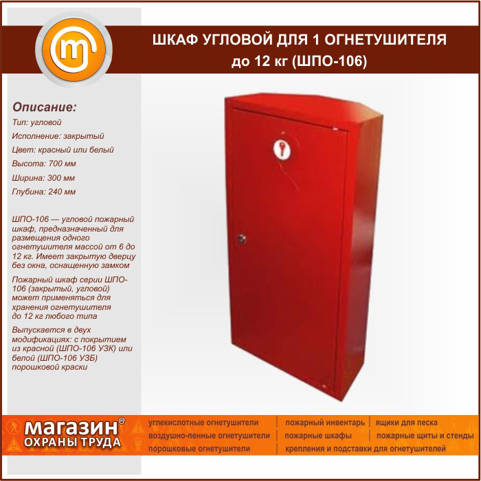 Шкаф пожарный ШПО-106 угловой для 1 огнетушителя до 12 кг в Черкесске купить