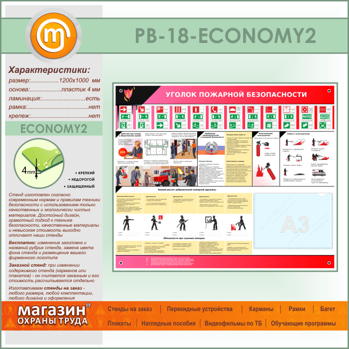Стенд «Уголок пожарной безопасности» с карманом А3 формата (PB-18-ECONOMY2) в Черкесске купить