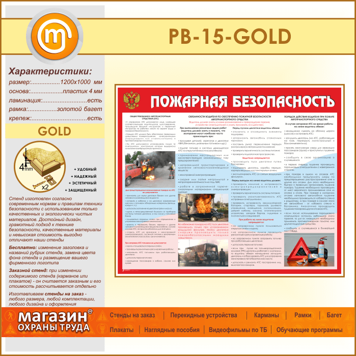 Стенд «Пожарная безопасность на автотранспорте» (PB-15-GOLD) в Черкесске купить