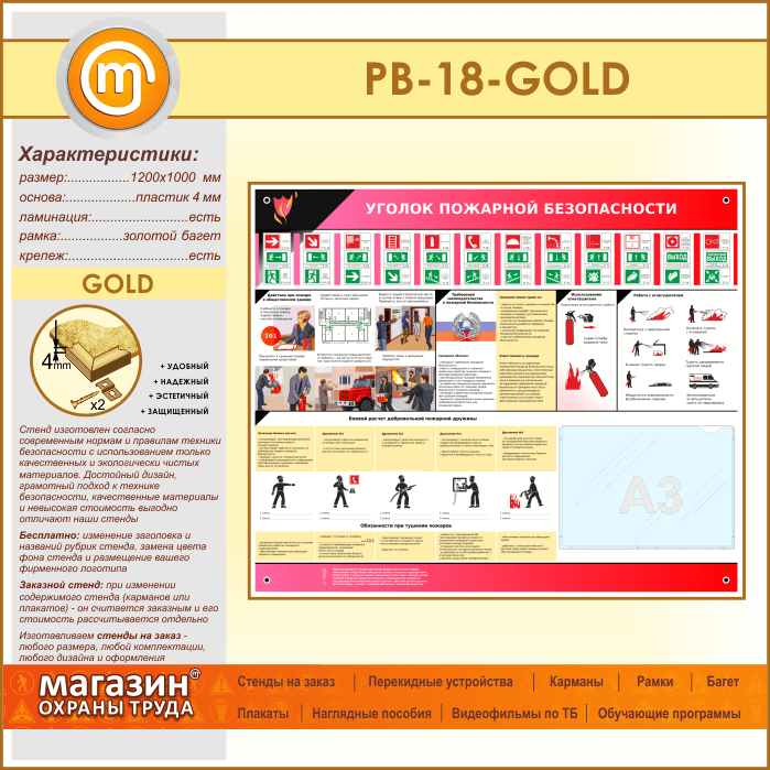 Стенд «Уголок пожарной безопасности» с карманом А3 формата (PB-18-GOLD) в Черкесске купить