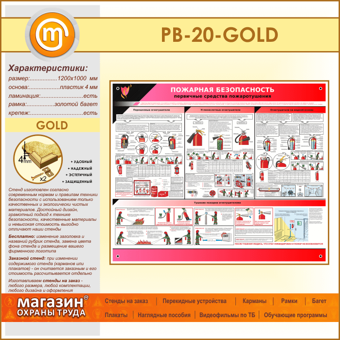 Стенд «Пожарная безопасность. Первичные средства пожаротушения» (PB-20-GOLD) в Черкесске купить