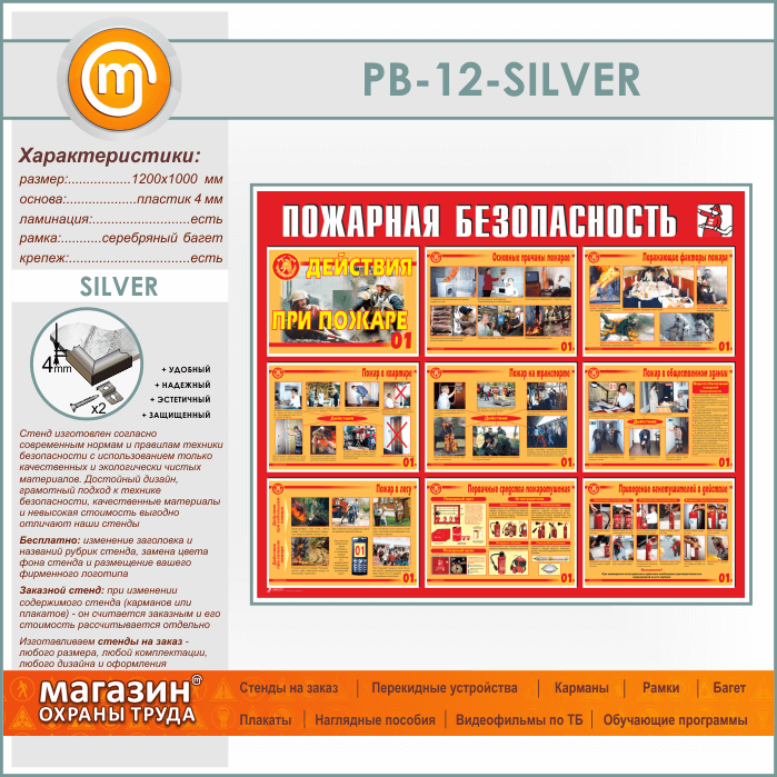 Стенд «Пожарная безопасность. Действия при пожаре» (PB-12-SILVER) в Черкесске купить