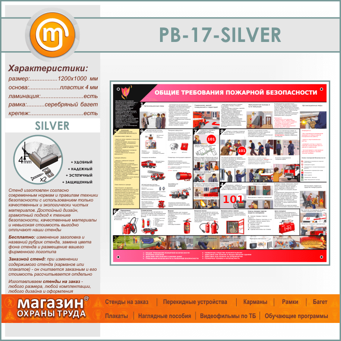 Стенд «Общие требования пожарной безопасности» (PB-17-SILVER) в Черкесске купить