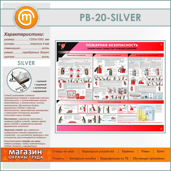 Стенд «Пожарная безопасность. Первичные средства пожаротушения» (PB-20-SILVER) в Черкесске купить