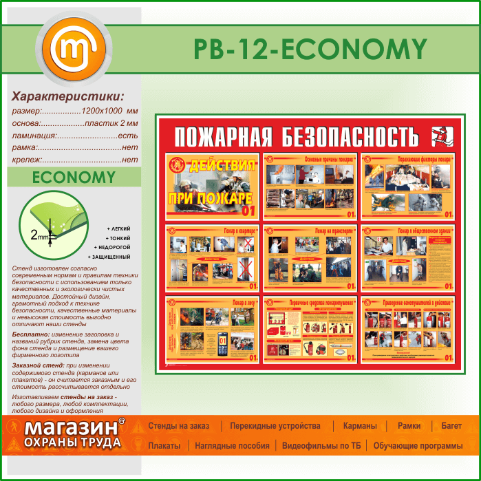 Стенд «Пожарная безопасность. Действия при пожаре» (PB-12-ECONOMY) в Черкесске купить