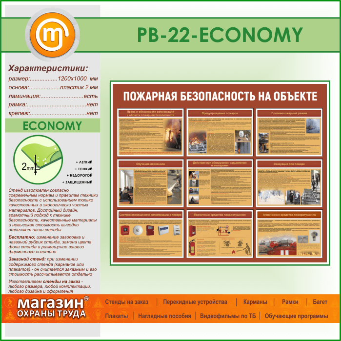 Стенд «Пожарная безопасность на объекте» (PB-22-ECONOMY) в Черкесске купить