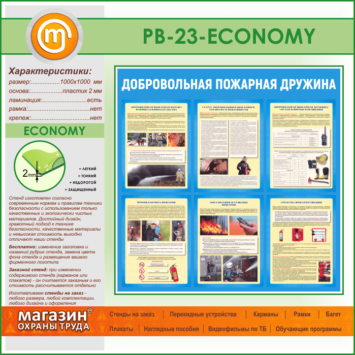 Стенд «Добровольная пожарная дружина» (PB-23-ECONOMY) в Черкесске купить