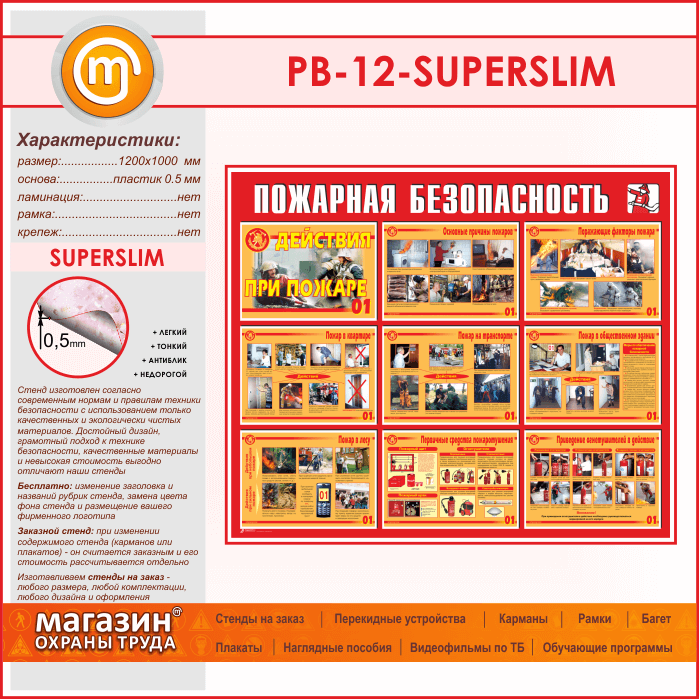Стенд «Пожарная безопасность. Действия при пожаре» (PB-12-SUPERSLIM) в Черкесске купить