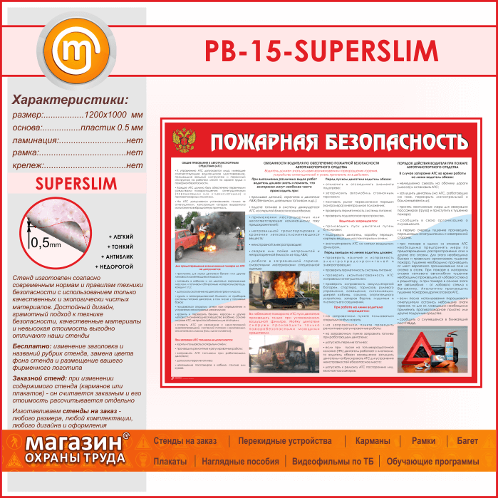Стенд «Пожарная безопасность на автотранспорте» (PB-15-SUPERSLIM) в Черкесске купить