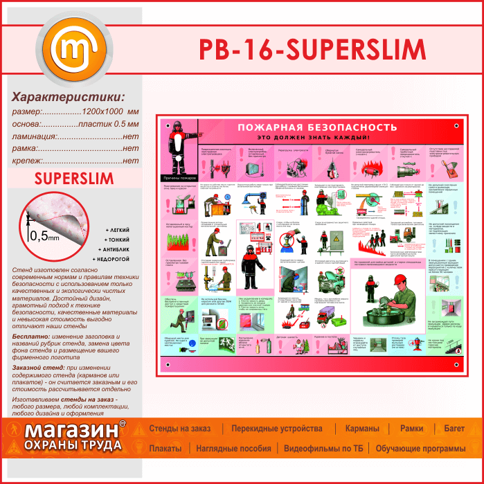 Стенд «Пожарная безопасность. Это должен знать каждый» (PB-16-SUPERSLIM) в Черкесске купить