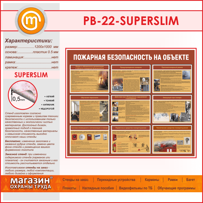 Стенд «Пожарная безопасность на объекте» (PB-22-SUPERSLIM) в Черкесске купить