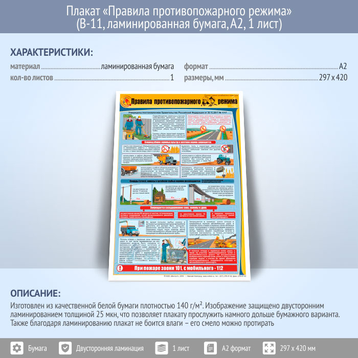 Плакат «Правила противопожарного режима» (В-11, ламинированная бумага, А2, 1 лист) в Черкесске купить