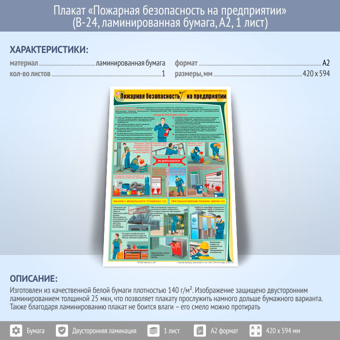 Плакат «Пожарная безопасность на предприятии» (В-24, ламинированная бумага, А2, 1 лист) в Черкесске купить