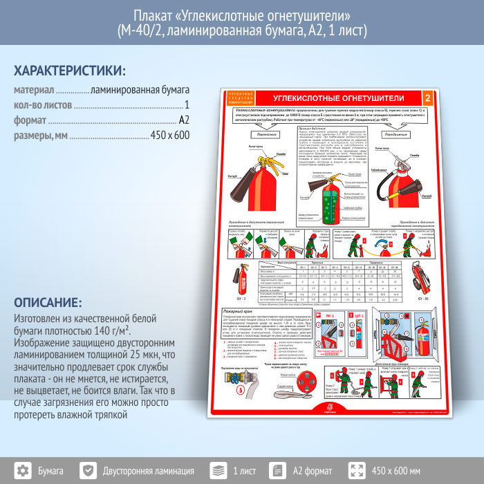 Плакат «Углекислотные огнетушители» (М-40/2, ламинированная бумага, А2, 1 лист) в Черкесске купить