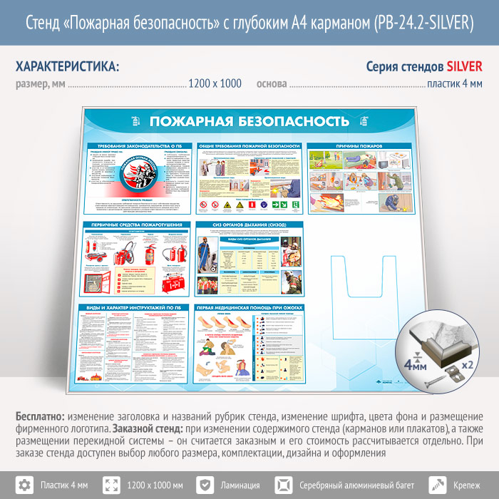 Стенд «Пожарная безопасность» с глубоким А4 карманом (PB-24.2-SILVER) в Черкесске купить