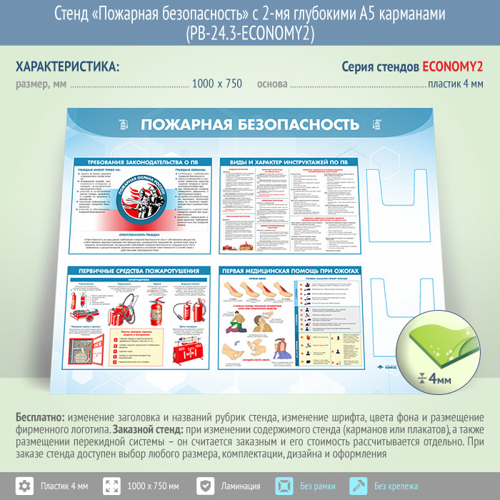 Стенд «Пожарная безопасность» с 2-мя глубокими А5 карманами (PB-24.3-ECONOMY2) в Черкесске купить