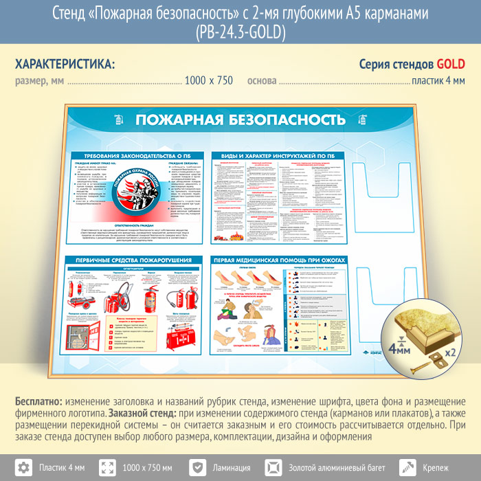 Стенд «Пожарная безопасность» с 2-мя глубокими А5 карманами (PB-24.3-GOLD) в Черкесске купить