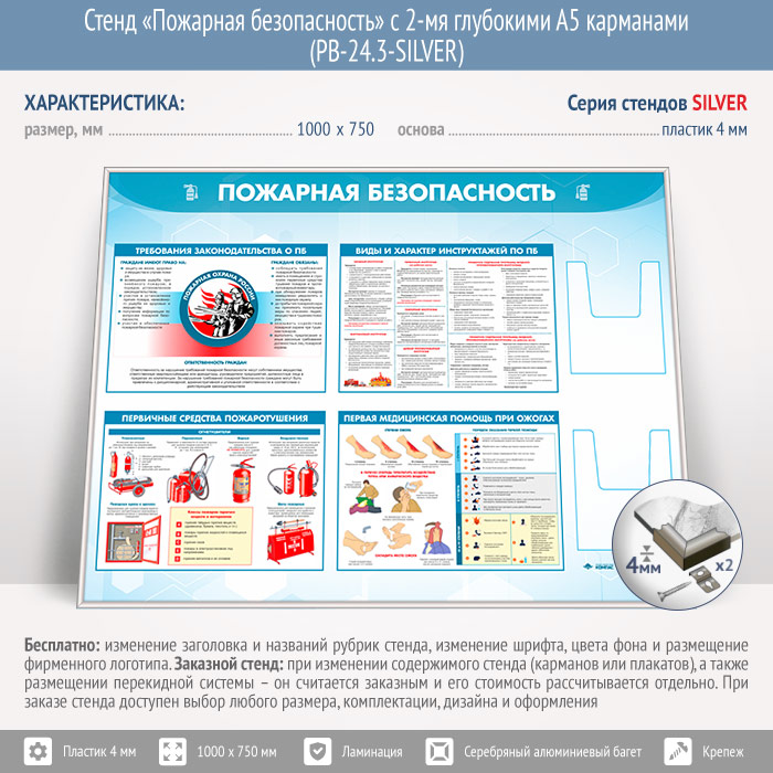 Стенд «Пожарная безопасность» с 2-мя глубокими А5 карманами (PB-24.3-SILVER) в Черкесске купить