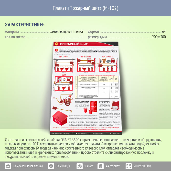 Плакат «Пожарный щит» (М-102, самоклеящаяся пленка, А4, 1 лист) в Черкесске купить