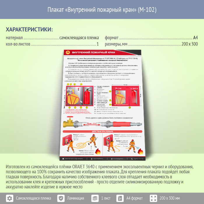 Плакат «Внутренний пожарный кран» (М-103, самоклеящаяся пленка, А4, 1 лист) в Черкесске купить