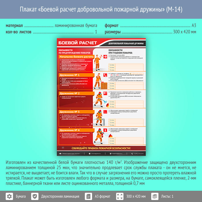 Плакат «Боевой расчет добровольной пожарной дружины» (М-14, ламинированная бумага, А3, 1 лист) в Черкесске купить