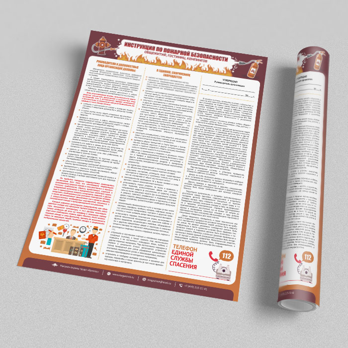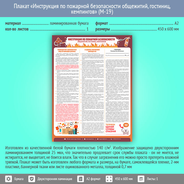 Плакат «Инструкция по пожарной безопасности общежитий, гостиниц, кемпингов» (М-19, ламинированная бумага, А2, 1 лист) в Черкесске купить