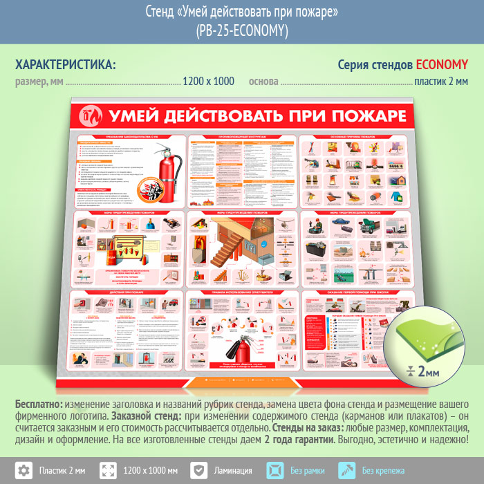 Стенд «Умей действовать при пожаре» (PB-25-ECONOMY) в Черкесске купить