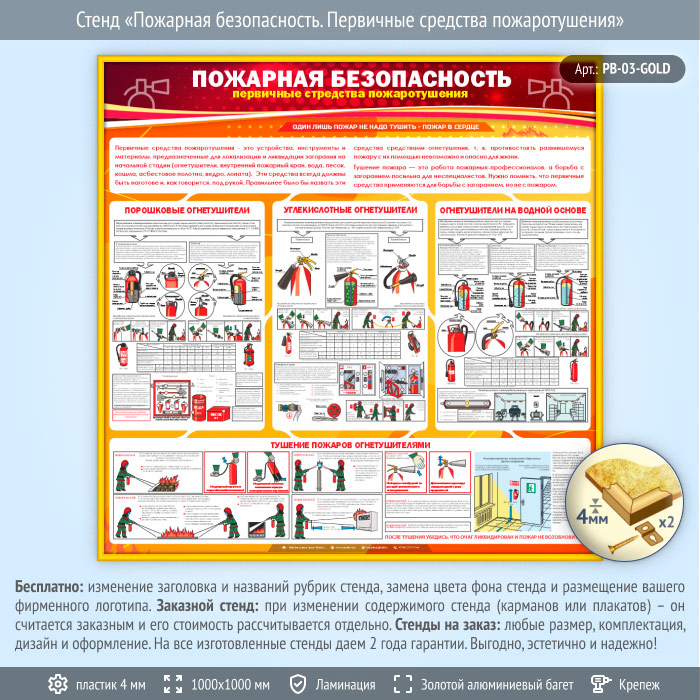 Стенд «Пожарная безопасность. Первичные средства пожаротушения» (PB-03-GOLD) в Черкесске купить