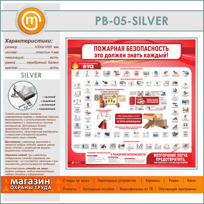 Стенд «Пожарная безопасность. Это должен знать каждый» (PB-05-SILVER) в Черкесске купить
