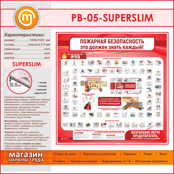 Стенд «Пожарная безопасность. Это должен знать каждый» (PB-05-SUPERSLIM) в Черкесске купить