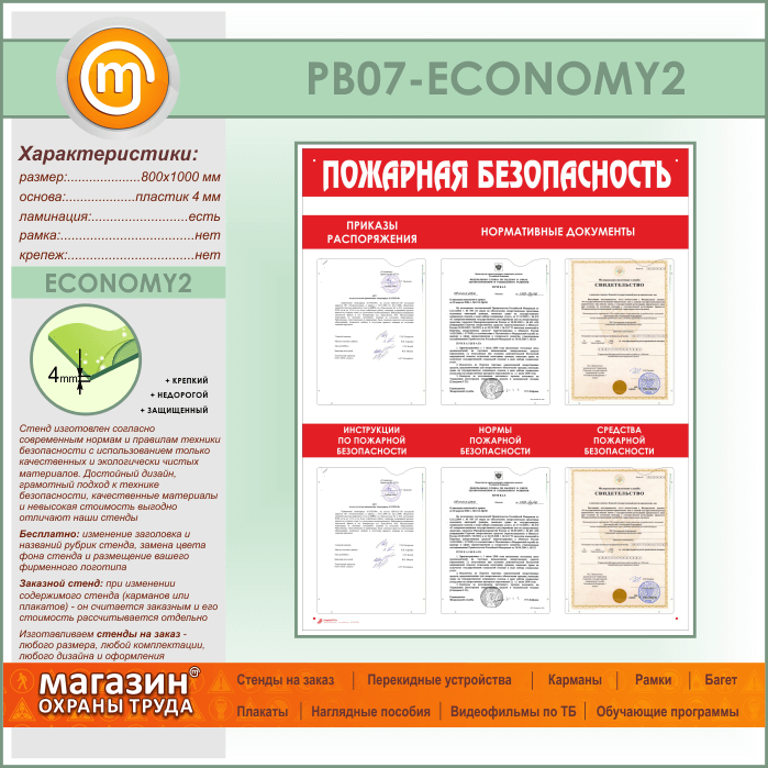 Стенд «Пожарная безопасность» с 6 карманами (PB-07-ECONOMY2) в Черкесске купить
