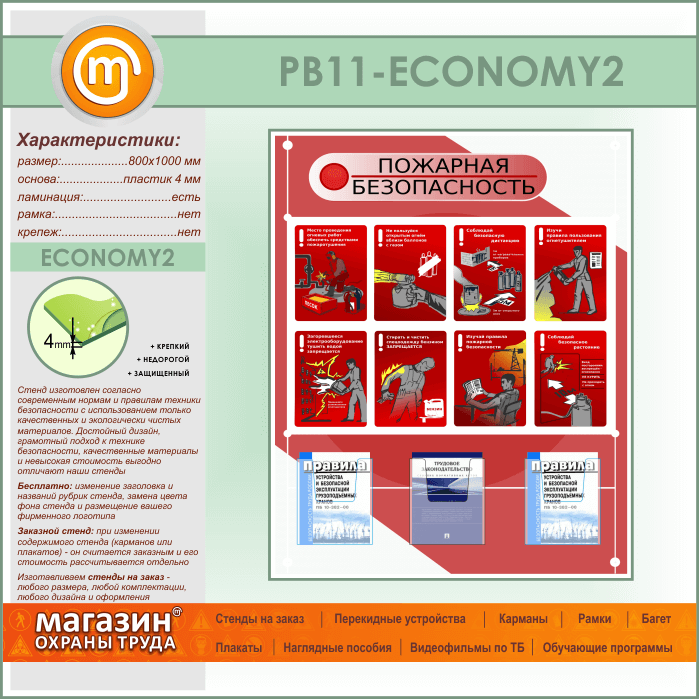 Стенд «Стенд пожарная безопасность в строительстве» с 3 объемными карманами (PB-11-ECONOMY2) в Черкесске купить