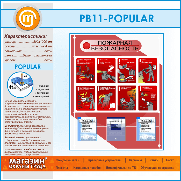 Стенд «Стенд пожарная безопасность в строительстве» с 3 объемными карманами (PB-11-POPULAR) в Черкесске купить
