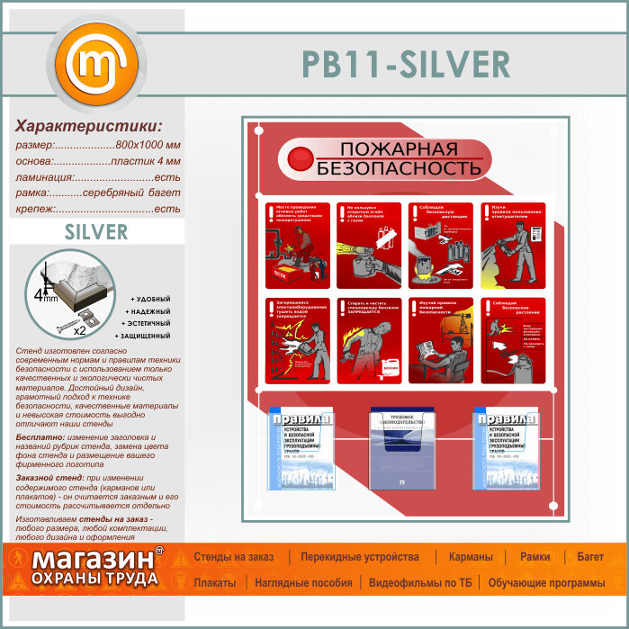 Стенд «Стенд пожарная безопасность в строительстве» с 3 объемными карманами (PB-11-SILVER) в Черкесске купить