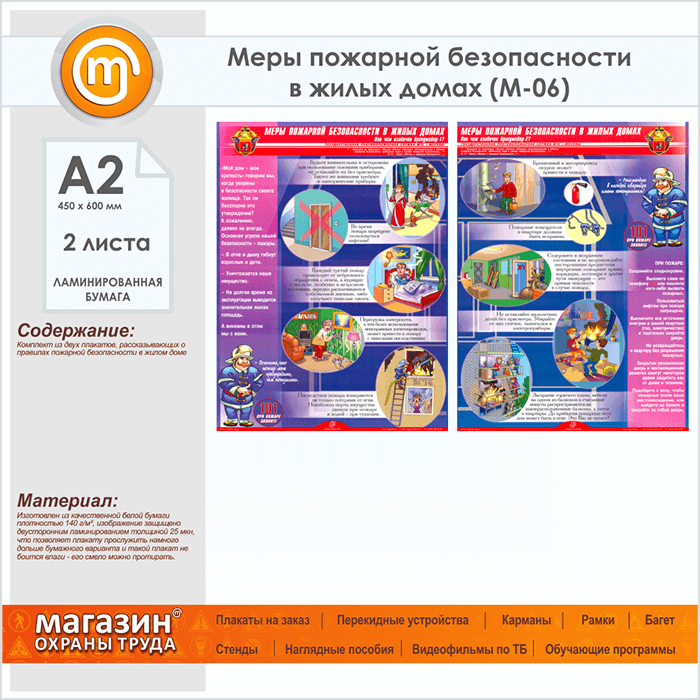 Плакаты «Меры пожарной безопасности в жилых домах» (М-06, ламинированная бумага, А2, 2 листа) в Черкесске купить